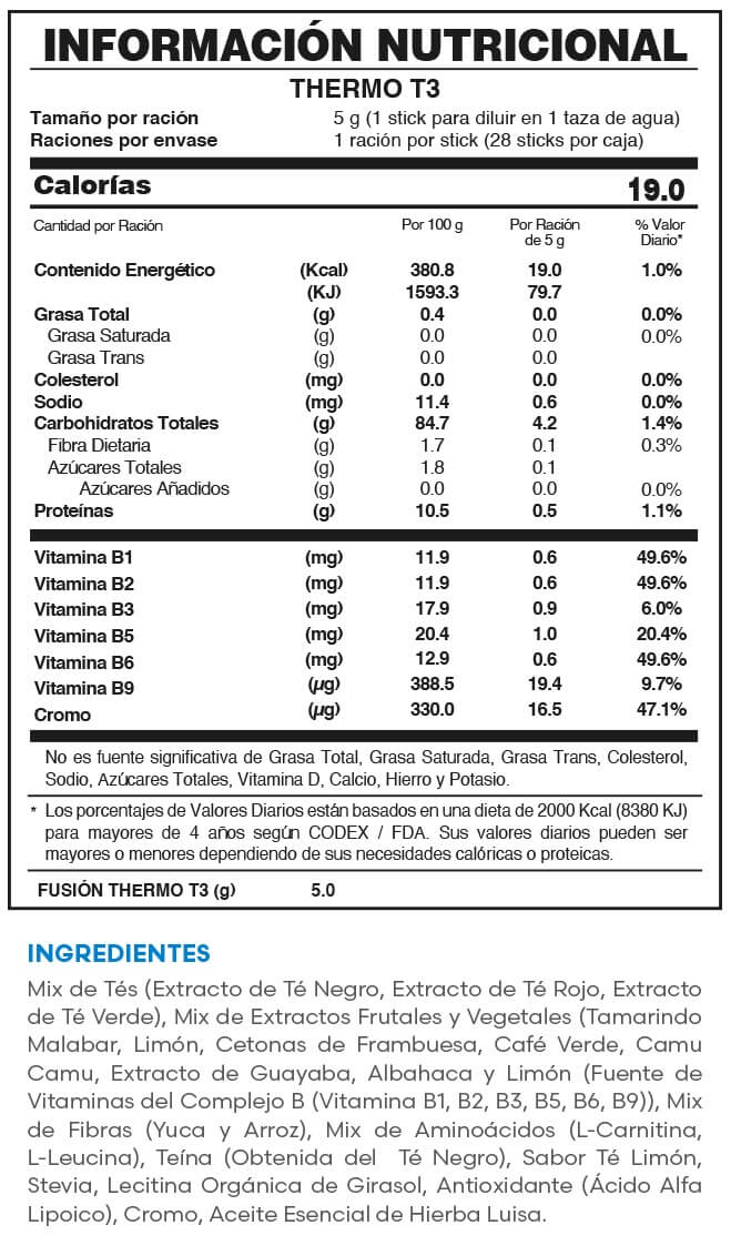 Delicioso mix de tres tés, con limón y extractos vegetales que promueve un óptimo metabolismo, generando energía a partir de la grasa acumulada en el cuerpo. Por lo que contribuye a la reducción de medidas y la pérdida de peso (*), para lograr un organismo más saludable.
