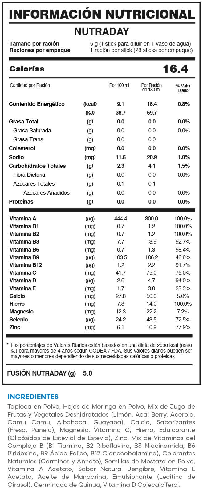 Delicioso refresco sabor a fresa natural con todos los micronutrientes que tu familia y tú necesitan para tener más vitalidad y fortalecer sus defensas. Está potenciado con extracto de Moringa, fuente natural de hierro (25 veces más concentrado que la espinaca) y calcio (17 veces más que la leche). Este delicioso mix es el alimento ideal para complementar la nutrición de tu familia, desde tus hijos a tus abuelos.