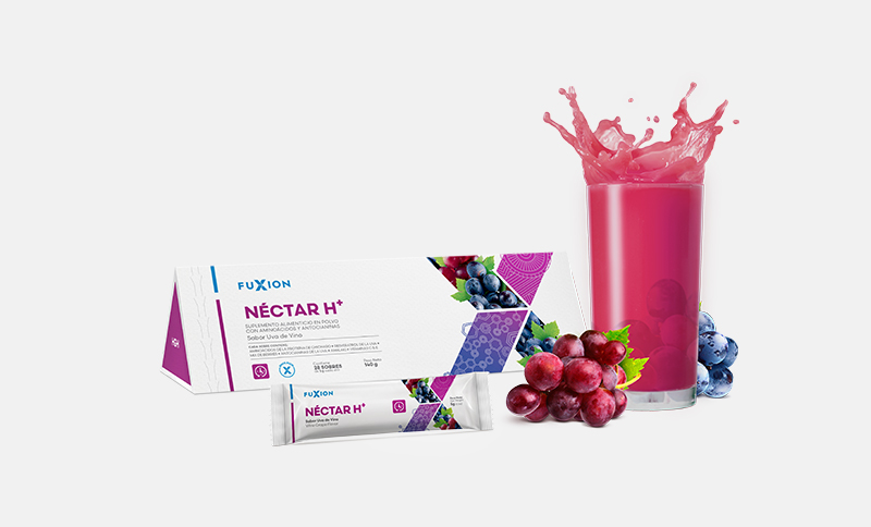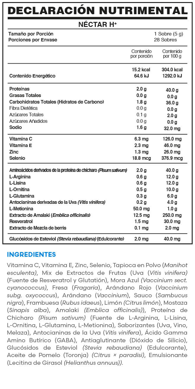 Suplemento alimenticio en polvo con aminoácidos y antocianinas.