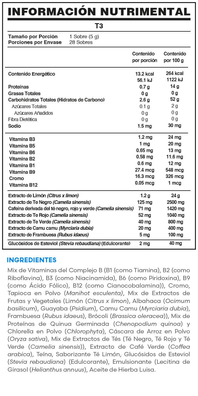 Suplemento alimenticio en polvo con té rojo, té negro y té verde.