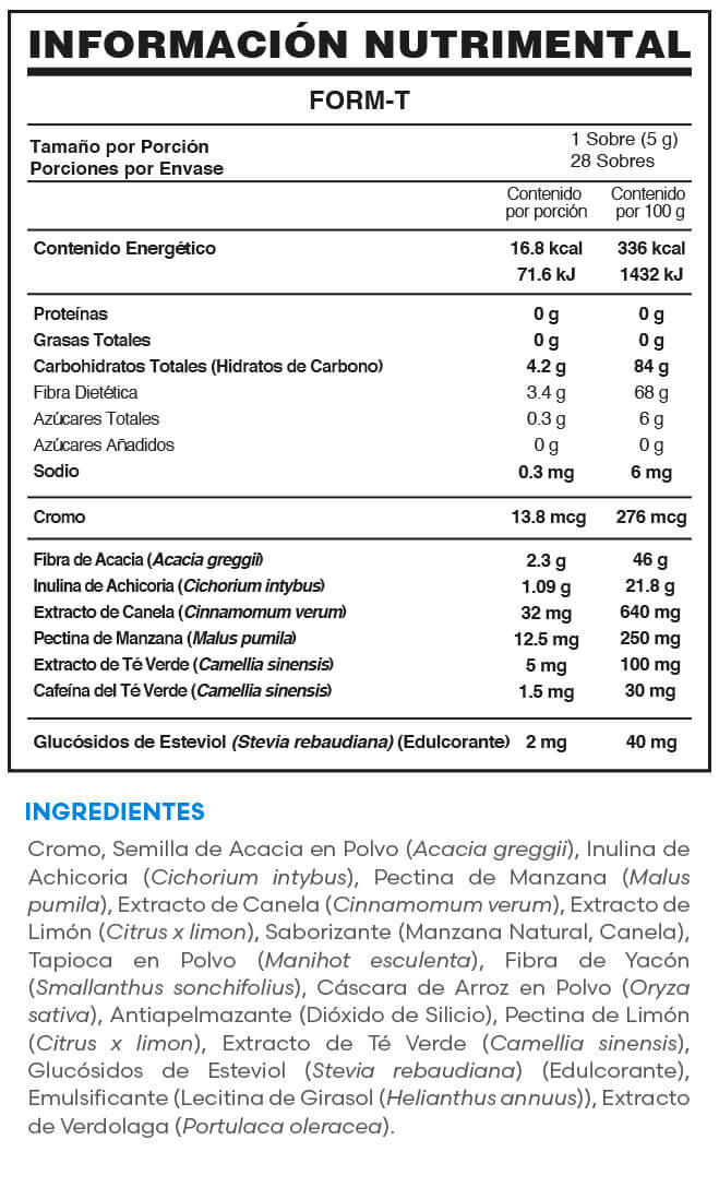 Suplemento alimenticio en polvo a base de fibras de acacia e inulina de achicoria.