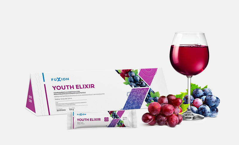 Combinación natural de aminoácidos con antioxidantes como el resveratrol, que se encuentra en la uva del vino y súper frutas como blue-berries, sauco y amalaki que trabajan sinérgicamente para reducir los radicales libres y nutrir la glándula pituitaria, responsable de segregar la hormona de la juventud.