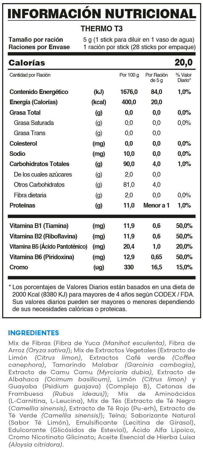 Delicioso mix de tres tés, con limón y extractos vegetales que promueve un óptimo metabolismo, generando energía a partir de la grasa acumulada en el cuerpo. Por lo que contribuye a la reducción de medidas y la pérdida de peso (*), para lograr un organismo más saludable. (**) (*) Junto a una dieta balanceada y ejercicio. (**) Se considera al sobrepeso como un factor de riesgo para diversas enfermedades.