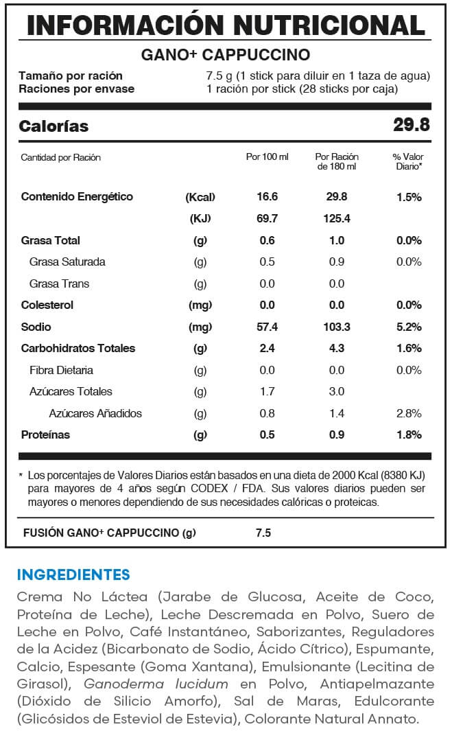 Delicioso café cappuccino elaborado con extracto de Ganoderma Lucidum, hongo silvestre de Asia, usado ancestralmente como el secreto de la longevidad por su gran poder antioxidante a nivel celular.