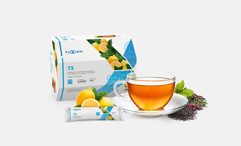 Suplemento alimenticio en polvo con té rojo, té negro y té verde.